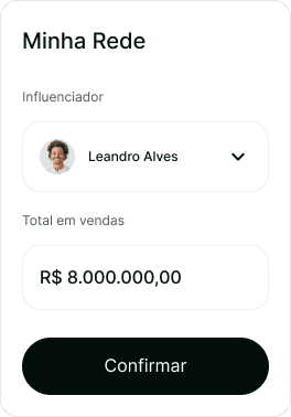 Crie links personalizados, convide influenciadores e acompanhe as vendas de cada parceiro.